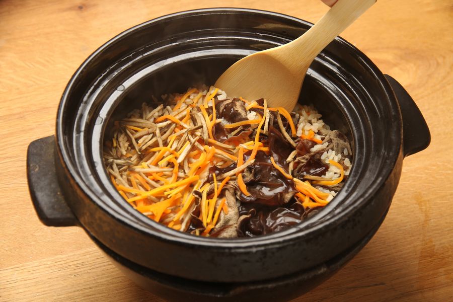 野洲でとれた肉厚の黒きくらげが入った「炊き込みご飯の素」をはじめ、提供しているすべての食品は化学調味料・保存料無添加を実現したものです。